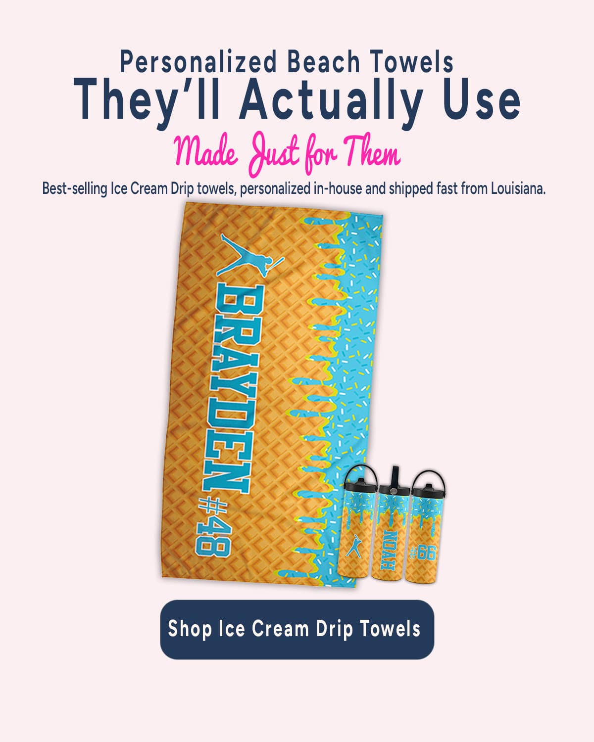 Ice Cream Sprinkle Drip Personalized Beach Towel
