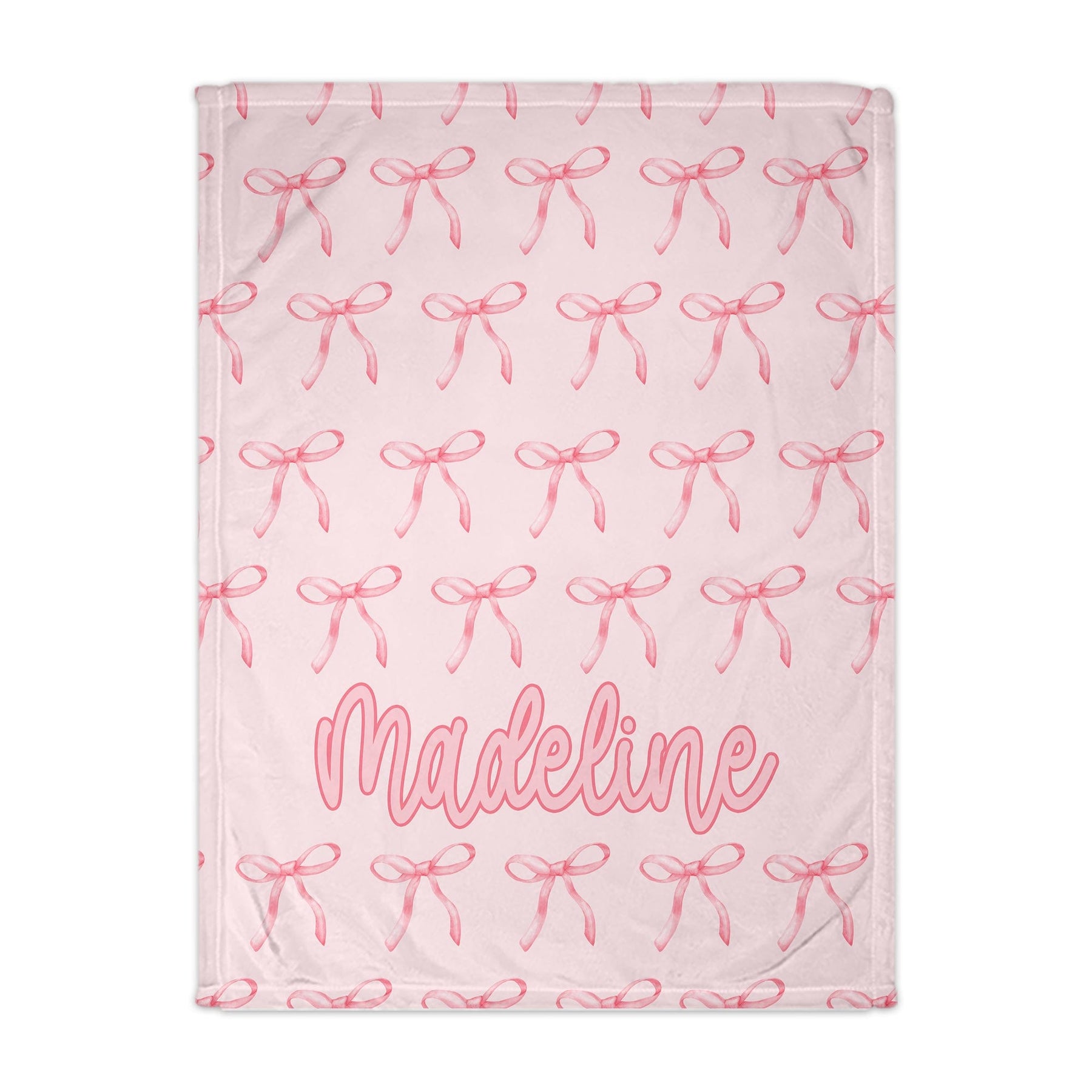 Prepare for this to become her new favorite snuggly soft blanket. Our Pretty In Bows Personalized Blanket is perfect for the girlies that love all things Pink and Coquette Bows.