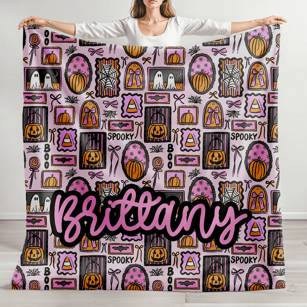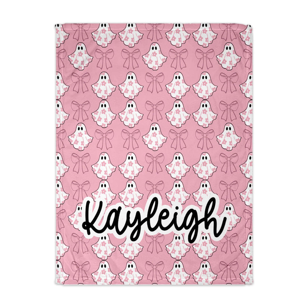 Personalized Halloween Ghost Minky Blanket with Coquette Pink Bow