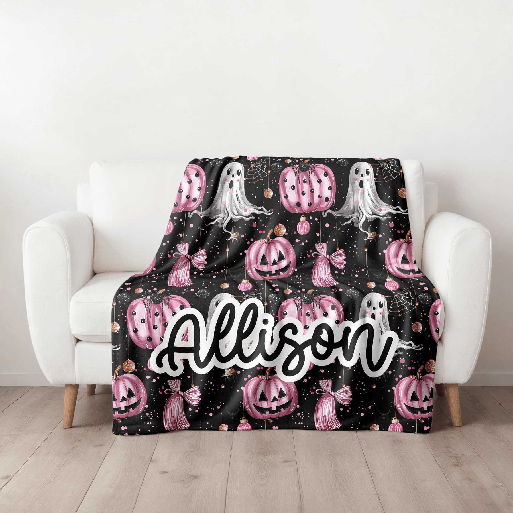 This personalized Pink Metallic Pumpkins and Ghost Blanket is a fun twist on spooky season, perfect for cozying up during fall. Soft, custom-made, and shipped fast from our studio in Louisiana.